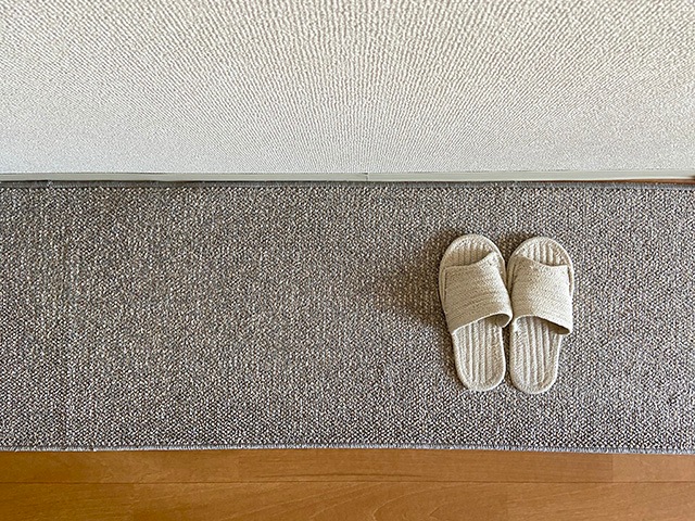 ※ 長期間敷き詰めたままにしておくと、マットの裏面材や床用ワックスの影響で床材が黄変または密着したり、床が滑りやすくなる場合があります。 時どき使用場所をずらしたり、中性洗剤で床面を拭いてご使用ください。