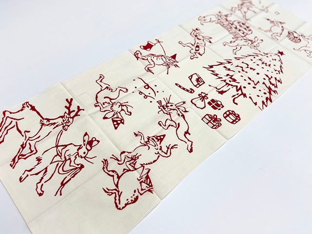 糸の中まで染料で染めるため、布地が硬くならず、吸水性がよくて乾きやすいのも「注染」の特徴です。柄に裏表がなくリバーシブルで使えることもあり、てぬぐいには最適な染め方なのです。