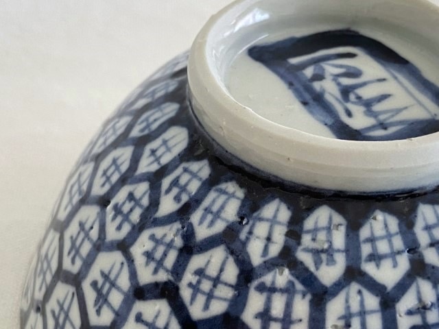 大胆かつユニークなデザインと染付の落ち着いた青が程よく調和。