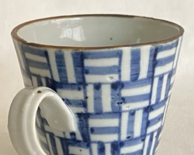 中尾万作の器:粘土に細かい砂利を混ぜ、味わいを出しています。砂利を含む土は、鉄粉(茶色い点)が出ることがありますが、中尾万作の作風のひとつとしてお楽しみください。