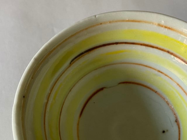 中尾万作の器:粘土に細かい砂利を混ぜ、味わいを出しています。砂利を含む土は、鉄粉(茶色い点)が出ることがありますが、中尾万作の作風のひとつとしてお楽しみください。