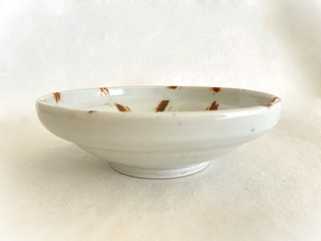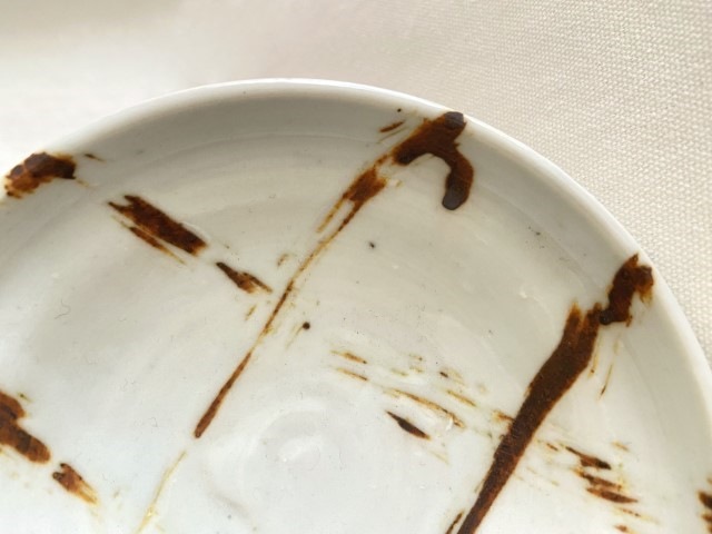 中尾万作の器:粘土に細かい砂利を混ぜ、味わいを出しています。砂利を含む土は、鉄粉(茶色い点)が出ることがありますが、中尾万作の作風のひとつとしてお楽しみください。