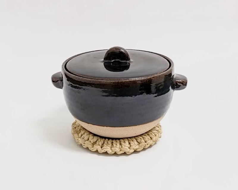 空気をたっぷり含んだ伊賀の陶土、鉄分を多く含んだ釉薬「黒釉」が全体を包み込むようにあたためるため、熱が行き渡った後も熱を逃がしにくいのが特徴。