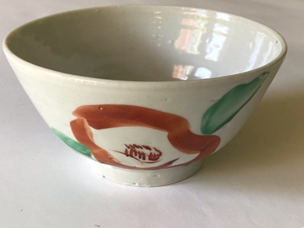 中尾万作の器:粘土に細かい砂利を混ぜ、味わいを出しています。砂利を含む土は、鉄粉(茶色い点)が出ることがありますが、中尾万作の作風のひとつとしてお楽しみください。