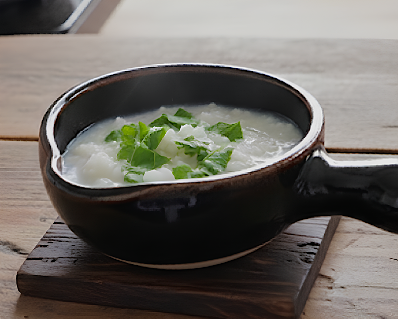 1.容量の7?8分目まで水を張り、大さじ3程度の米またはごはんを加え、弱火から徐々に加熱しておかゆを炊きます。(小麦粉でも代用可)
