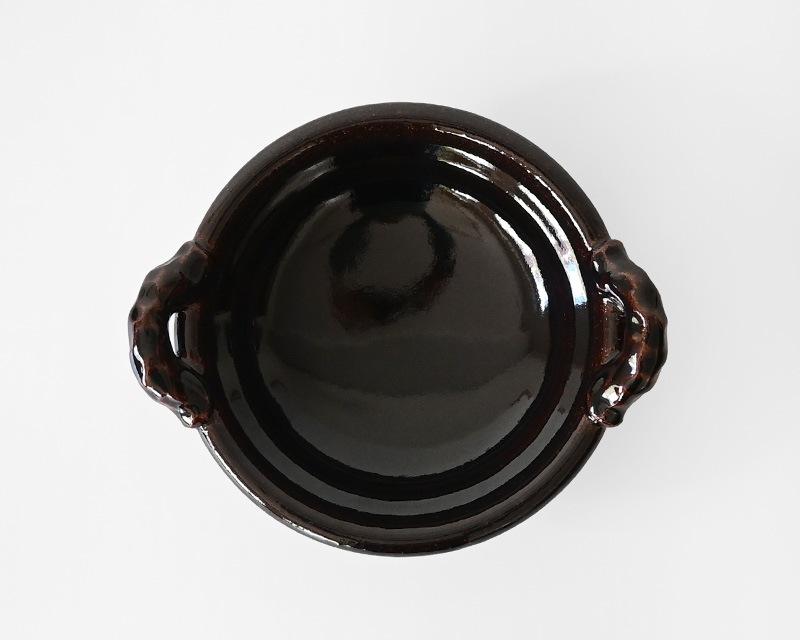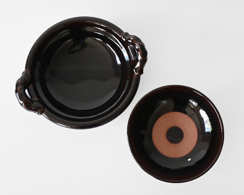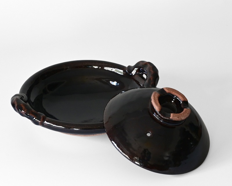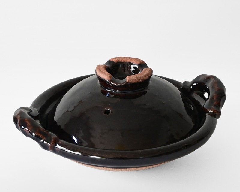 ろくろでひとつひとつ手作りされたあたたかな表情は、食卓に置くだけで絵になります。蓋付黒鍋はスッポン鍋として考案されたので浅めのつくり。