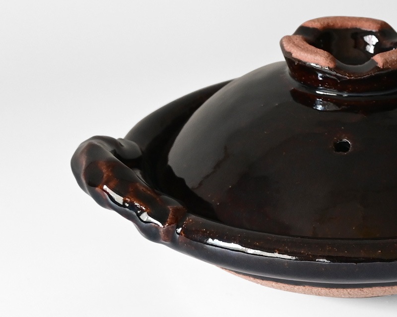 空気をたっぷり含んだ伊賀の陶土、鉄分を多く含んだ釉薬「黒釉」が全体を包み込むようにあたためるため、熱が行き渡った後も熱を逃がしにくいのが特徴。