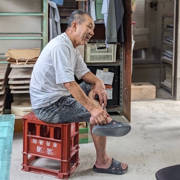 万作さんのうつわは、粘土に細かい砂利を混ぜ、味わいを出しています。砂利を含む土は鉄粉(茶色い点)が出ることがありますが、万作さんの作風のひとつとしてお楽しみください。