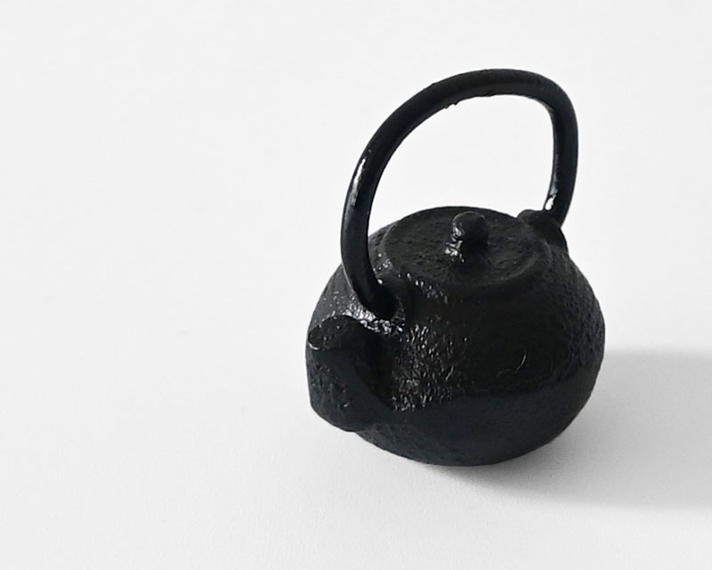 岩手県の伝統工芸品である南部鉄器の鉄瓶をそのままミニチュアにしたような、リアルな造形の箸置きです。
