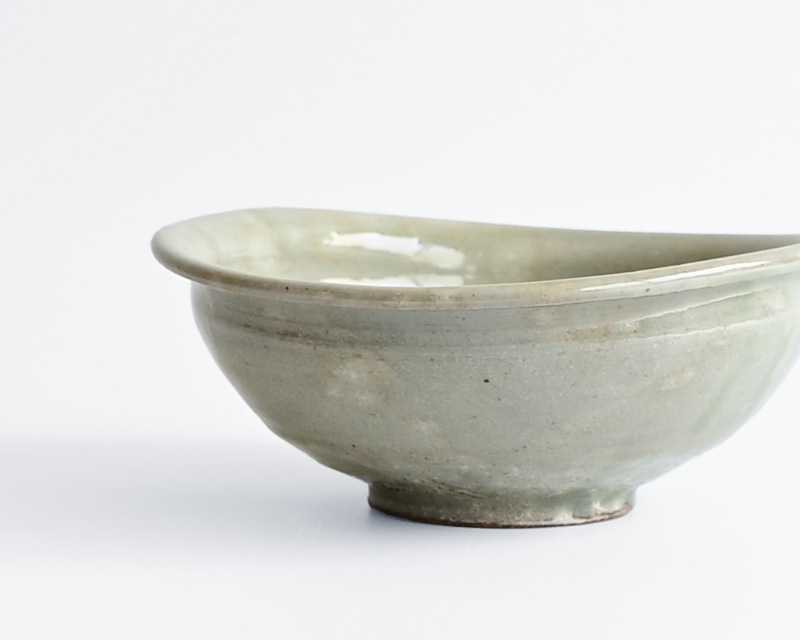 この器の魅力は、見る角度によって印象が異なること。上から見た時の均整のとれた楕円、横から見た時の口縁の大らかな曲線、その口縁も、長軸側と短軸側から見た時では雰囲気がガラッと変わり、さまざま表情で楽しませてくれます。