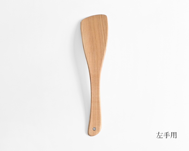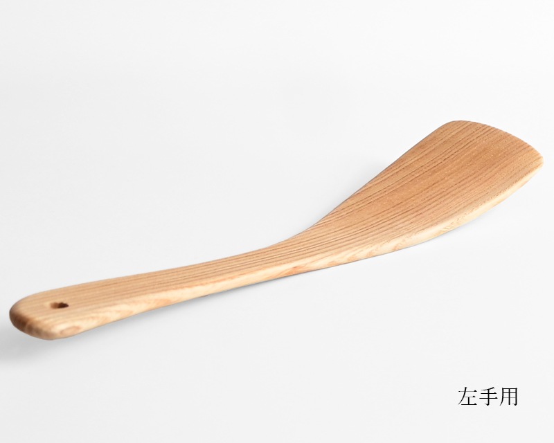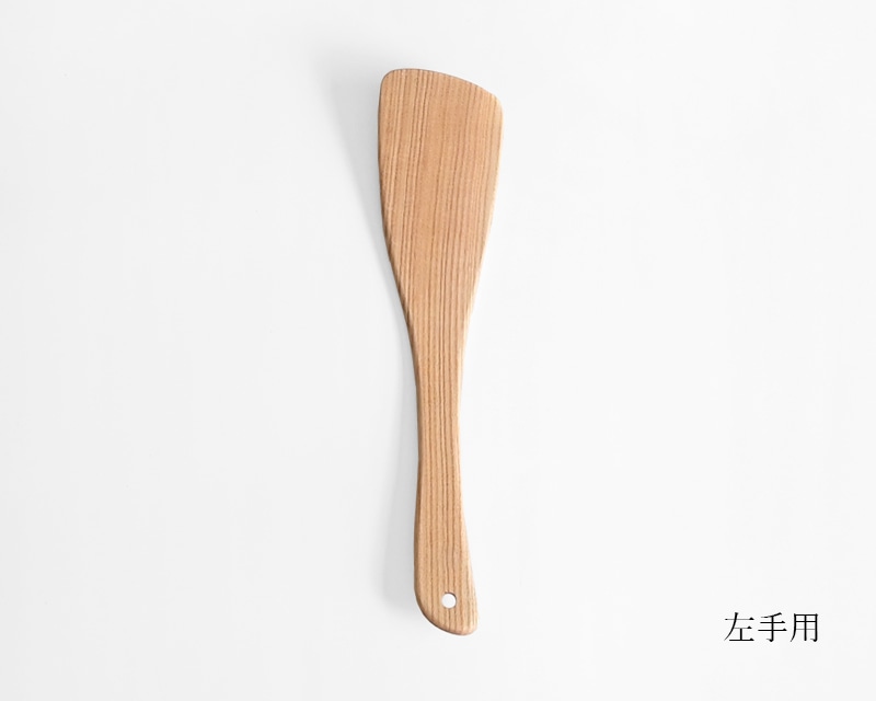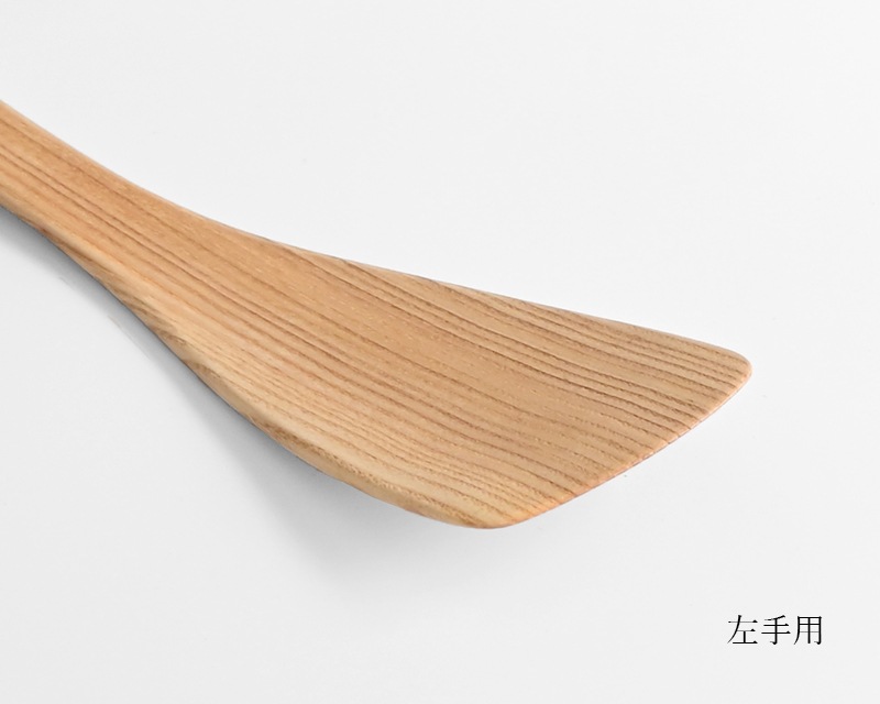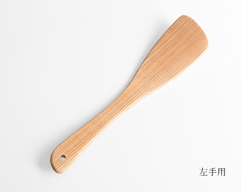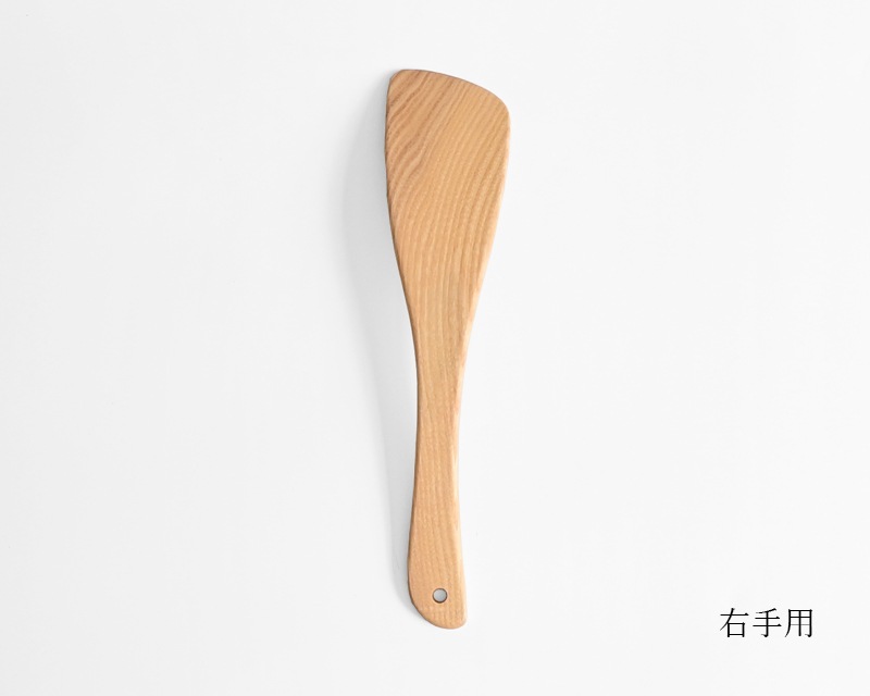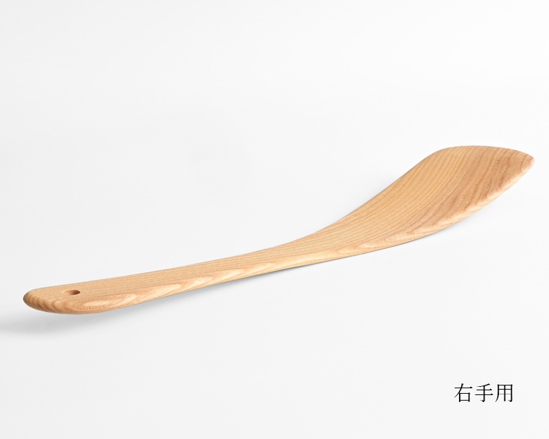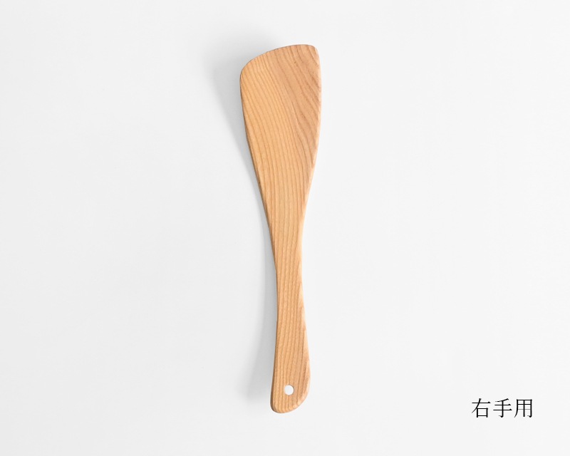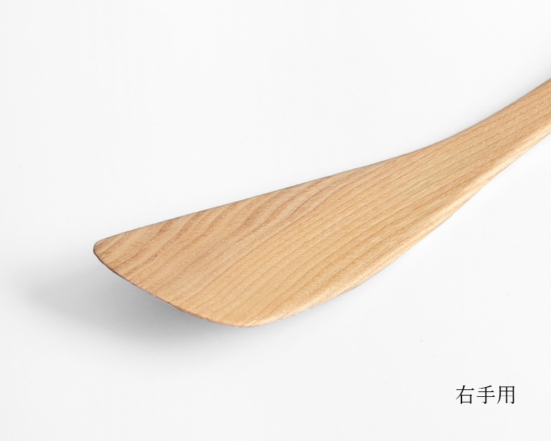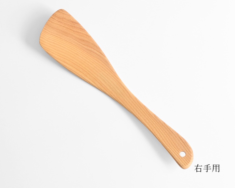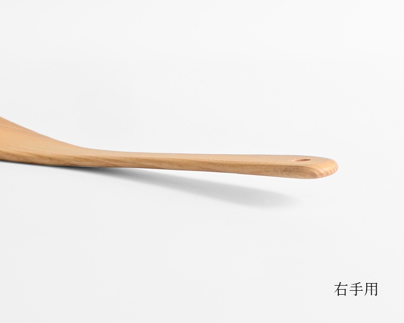 温かみがあり、使うほどに味わいが増すのも木のへらならでは。利き手に合わせて右手用と左手用をお選びください。