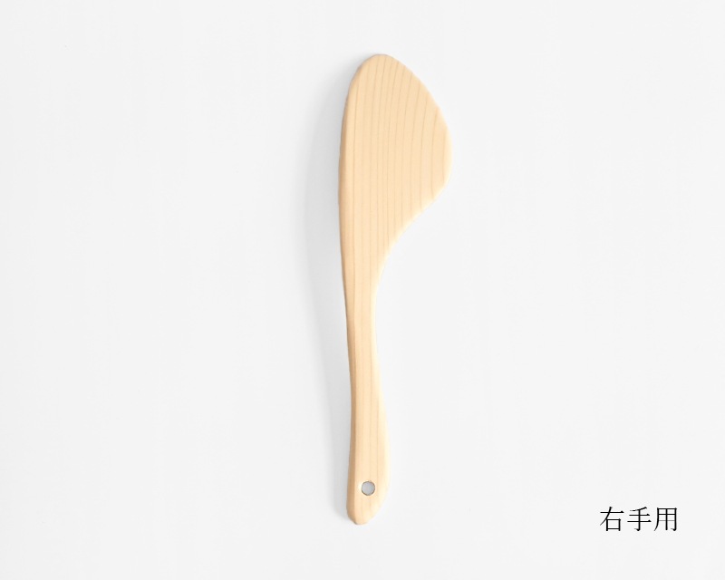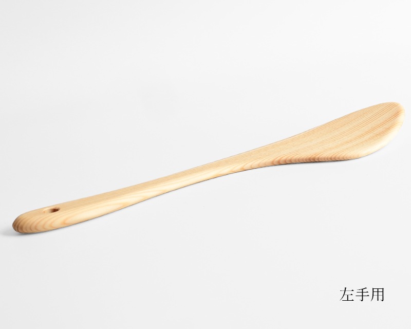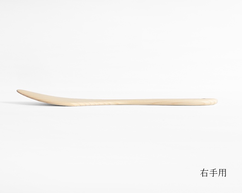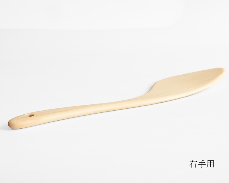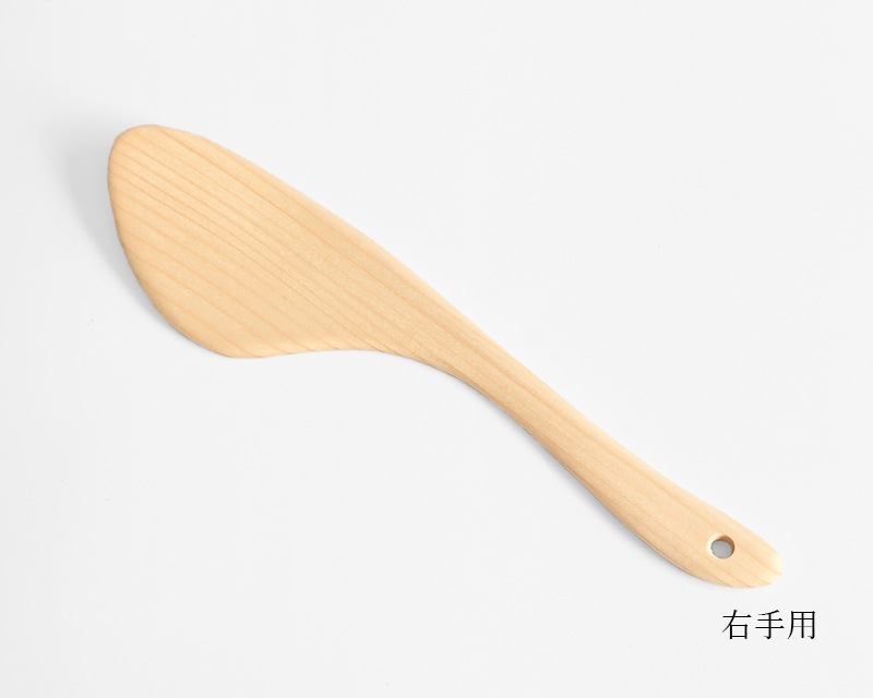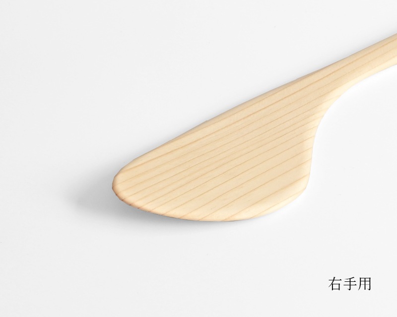 温かみがあり、使うほどに味わいが増すのも木のへらならでは。利き手に合わせて右手用と左手用をお選びください。