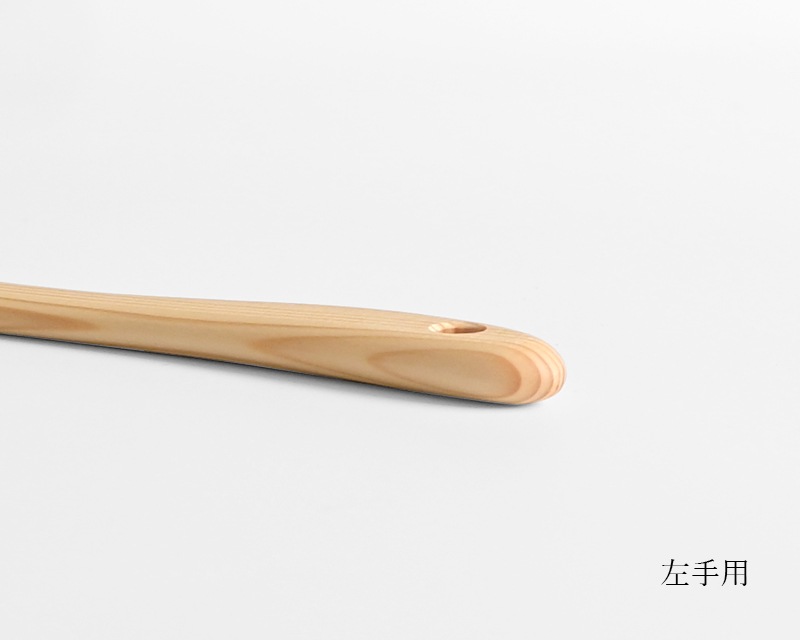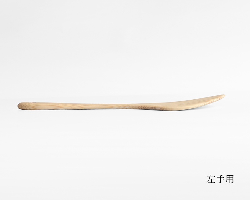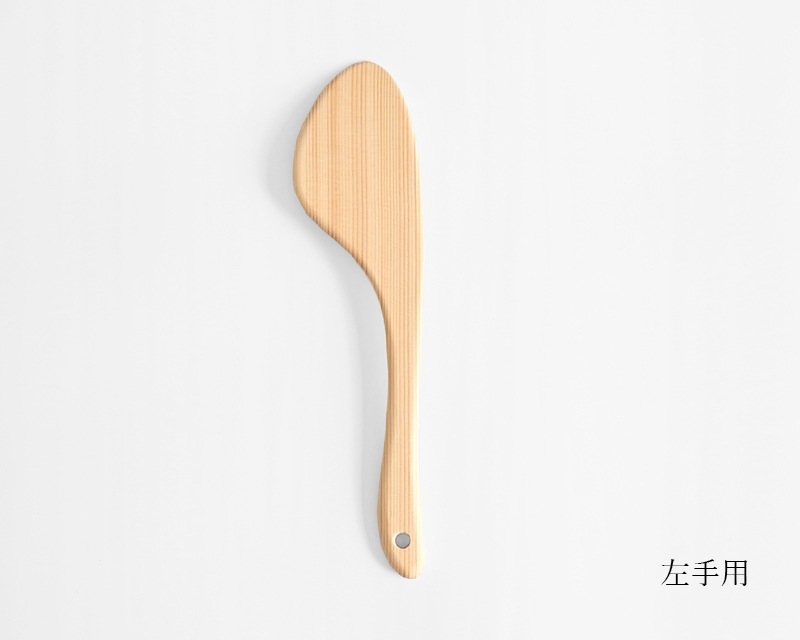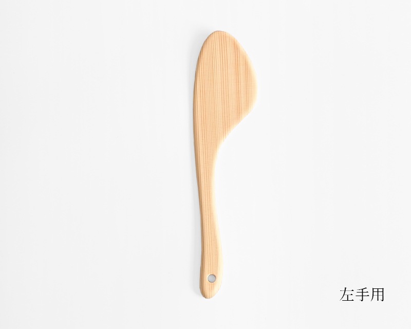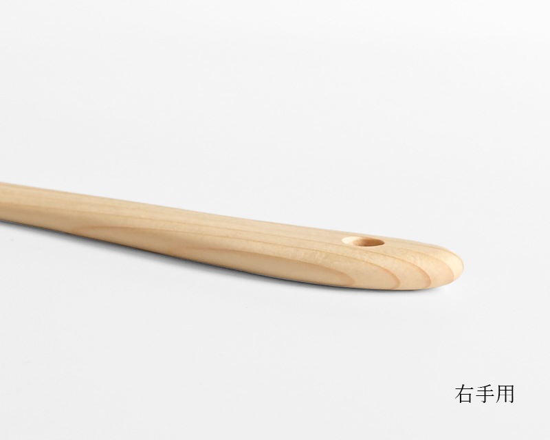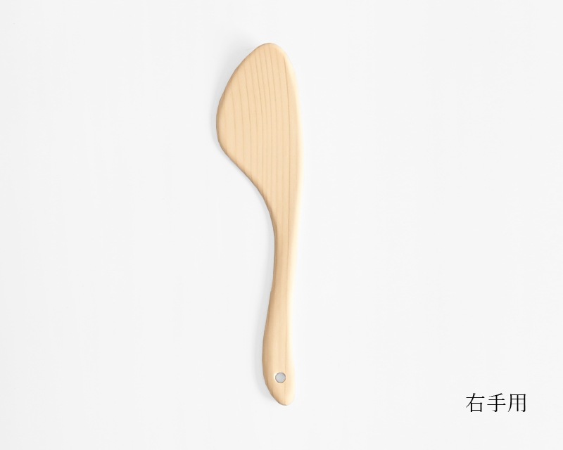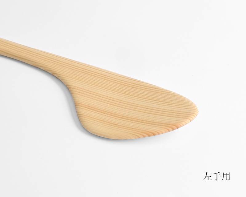 温かみがあり、使うほどに味わいが増すのも木のへらならでは。利き手に合わせて右手用と左手用をお選びください。