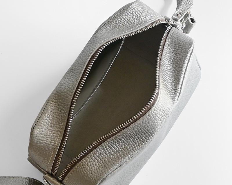 小ぶりな見た目ながら、しっかりマチを備えたボックスシルエットで収納力も◎。 どんな装いにも馴染むシンプルなデザインと輝き放つメタリックカラーで、スタイリングをブラッシュアップしてくれそうです。