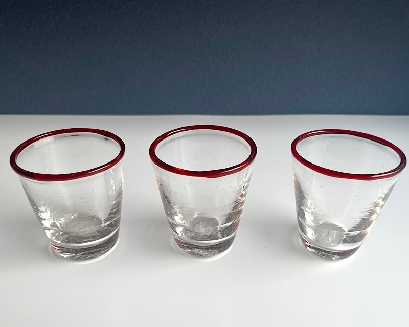 赤い縁取りが目を引くシンプルな形のぐい呑です。お酒はもちろん、果物やミニデザートなどを盛り付けるうつわとしてもおすすめです。