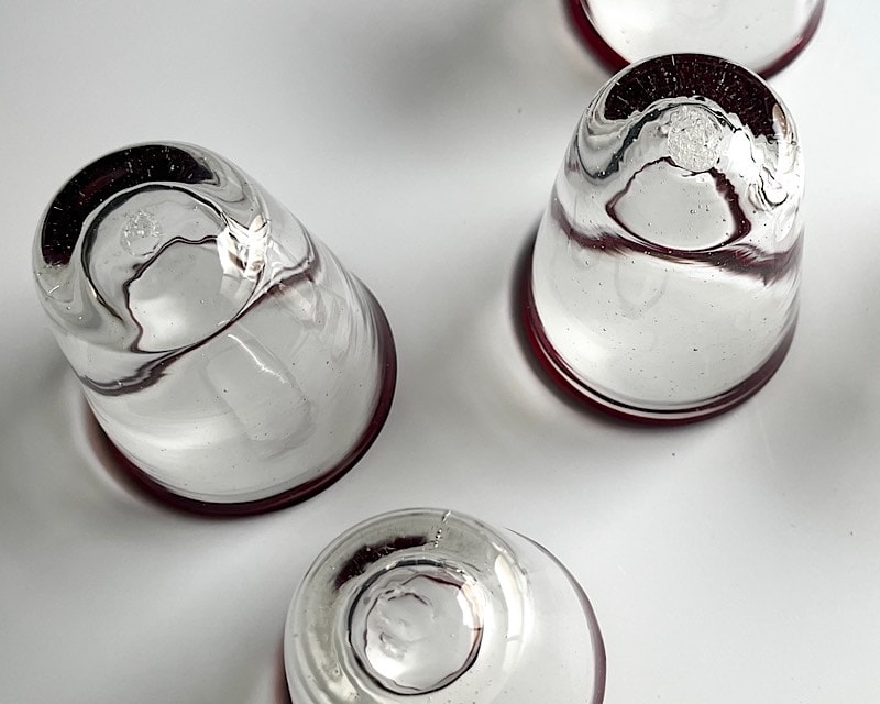 【製品の底にある〇模様について】 製品の底にある○型のキズのようなものは、手吹きガラスの証ともいえるポンテ跡 (制作の工程でできる模様) です。