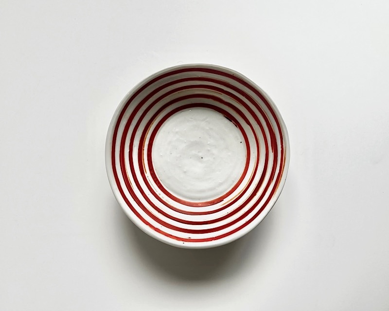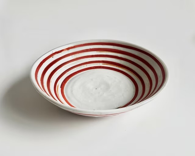 毎日の食卓がパッと明るくなる、中尾万作さんの赤コマサラダ鉢。手描きならではの温かいラインと、煮物にもサラダにも馴染む使いやすいサイズ感が魅力です。