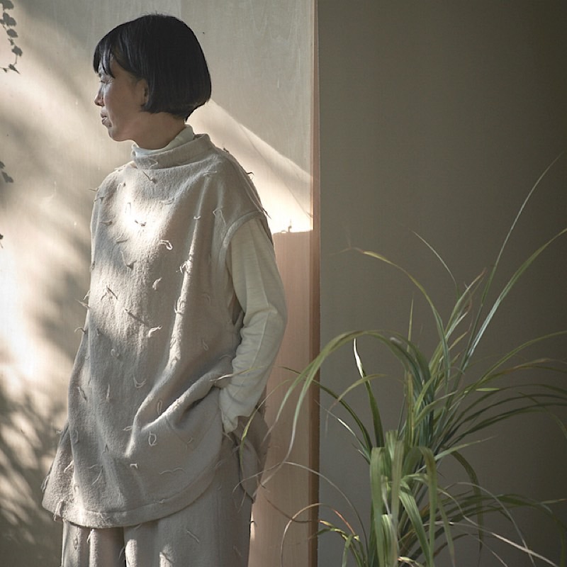 柔らかなタスマニアウールのブラウスに、ヒゲウールのベストやパンツなど、個性豊かな素材のAfa(アファ)の衣が揃います。